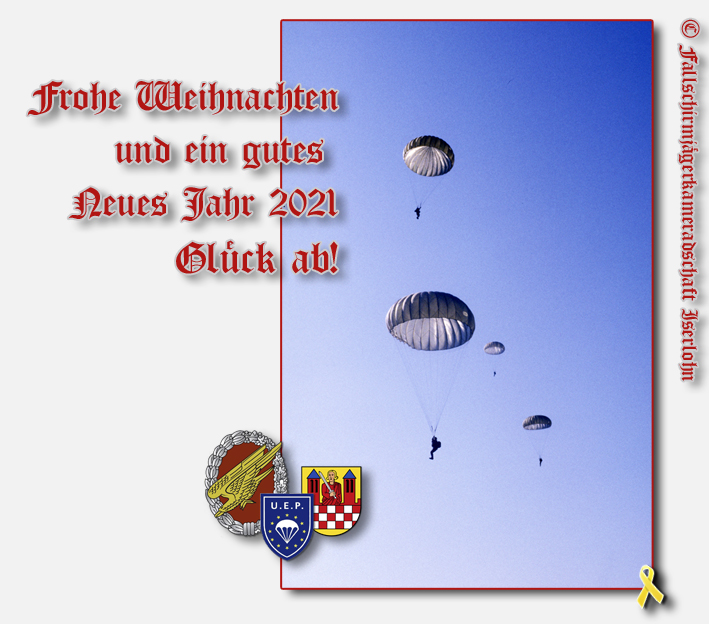Die Treffen der Fallschirmjägerkameradschaft Iserlohn im Februar und Mai 2021 mussten coronabedingt leider abgesagt werden. Februar/März Teilnahme an der Aktion "BDF-Briefmarke" des Bund Deutscher Fallschirmjäger.
